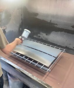 Po wykonaniu przygotówki stalowej i następuje dokładne umycie i odtłuszczenie powierzchni. Bez tej operacji natryskiwana emalia nie pokryje równym filmem całej powierzchni. Niezależnie od ilości kolorów wszystkie elementy pokrywane są dwustronnie emalią gruntową, która po wysuszeniu i wypaleniu stanowi bazę dla przyszłych warstw.