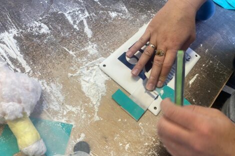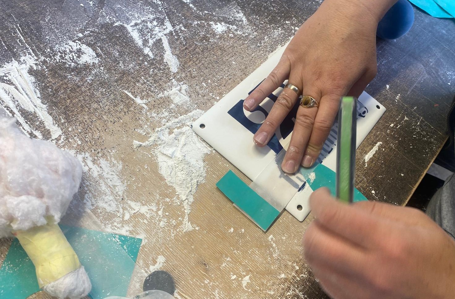 Po tych zabiegach dysponujemy przygotówką, która może posłużyć do sporządzenia każdego znaku informacyjnego. Tę pracę można wykonać w sposób seryjny. Jednak szyldy z reguły są wykonywane w pojedynczych egzemplarzach jako niepowtarzalne tabliczki. I tutaj konieczne są umiejętności i zręczność pracowników, którzy z wykorzystaniem szablonów kartonowych przedstawiających określony wzór usuwają wysuszoną emalię za pomocą szczotki z miękkiego włosia. Każdy kolor musi zostać ponownie wypalony w piecu.